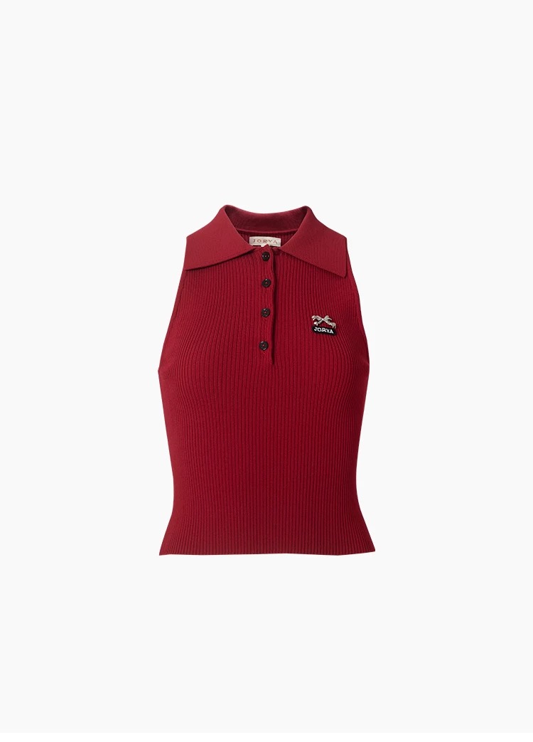 JORYA 25夏季新款红色法式POLO领无袖上衣