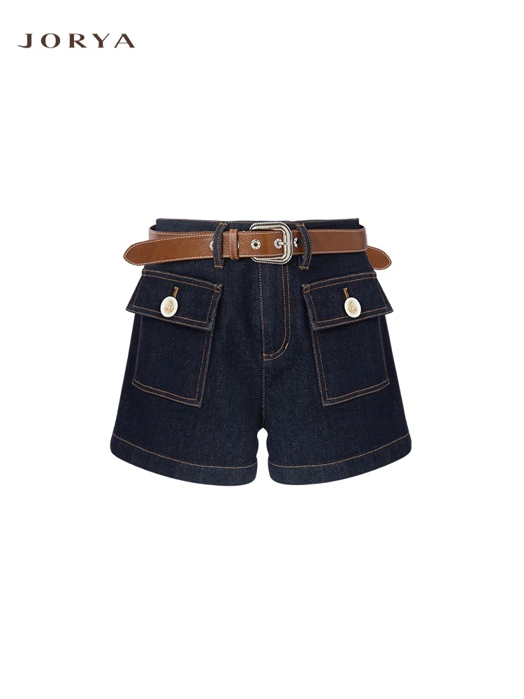 JORYA 25夏新款航海系穿搭修身时髦深色牛仔A字短裤