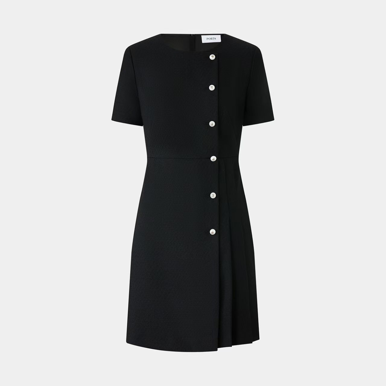 宝姿珍珠装饰扣羊毛花纱连衣裙