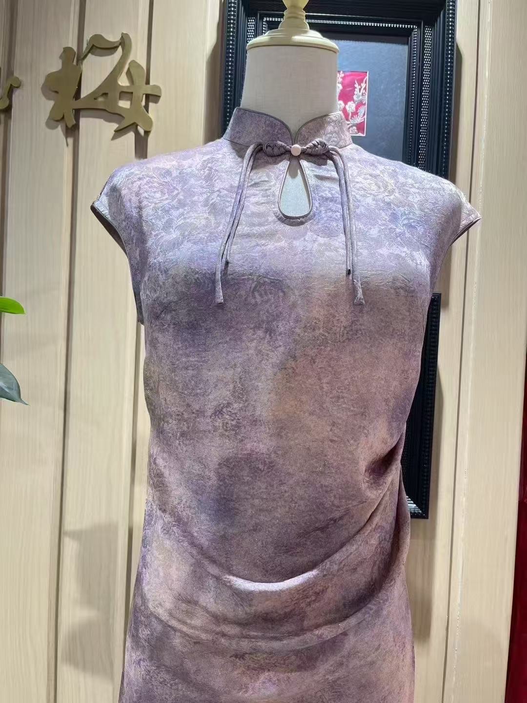 陶玉梅紫色桑蚕丝混纺连衣裙