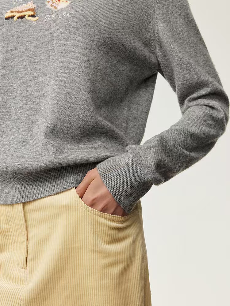 鄂尔多斯1980女毛绒提花刺绣套衫
