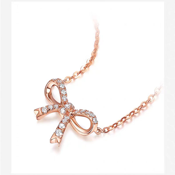 周大生钻石项链18K金玫瑰金蝴蝶结套链