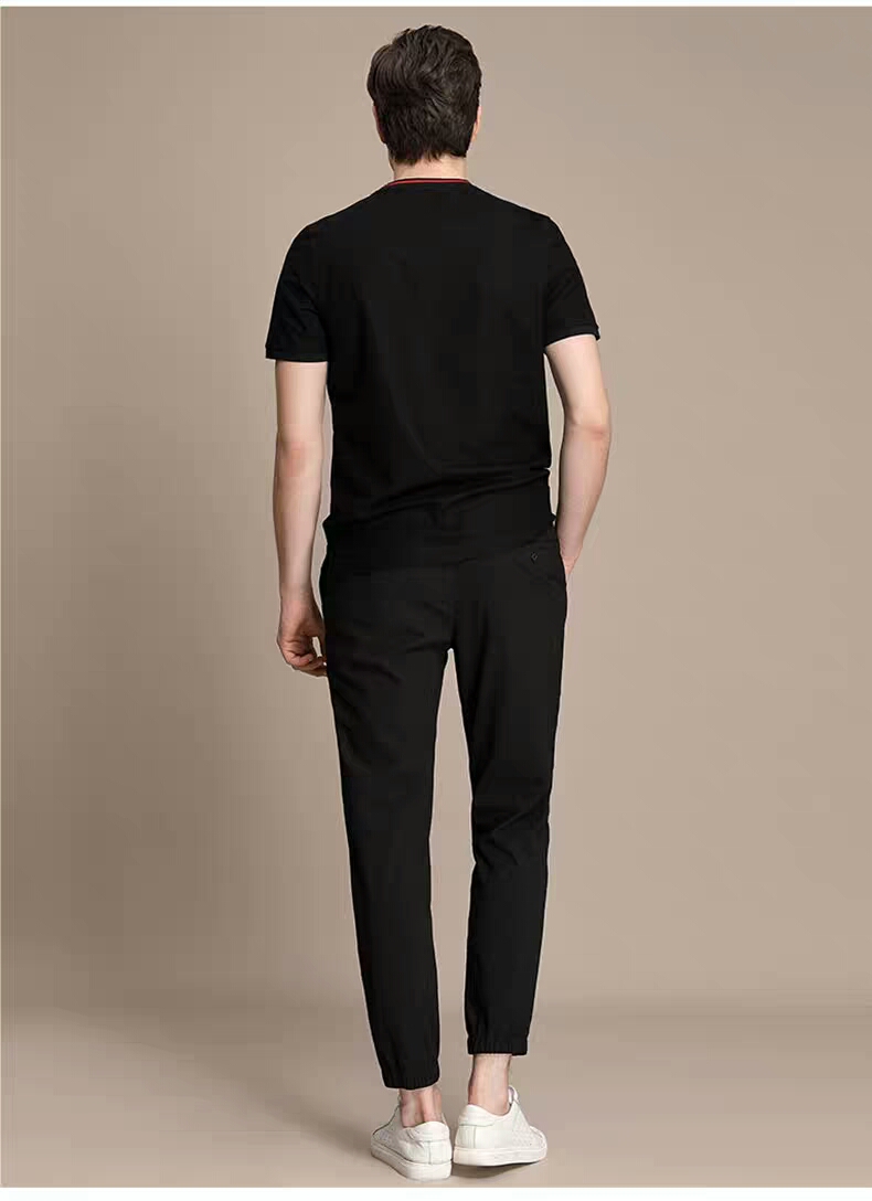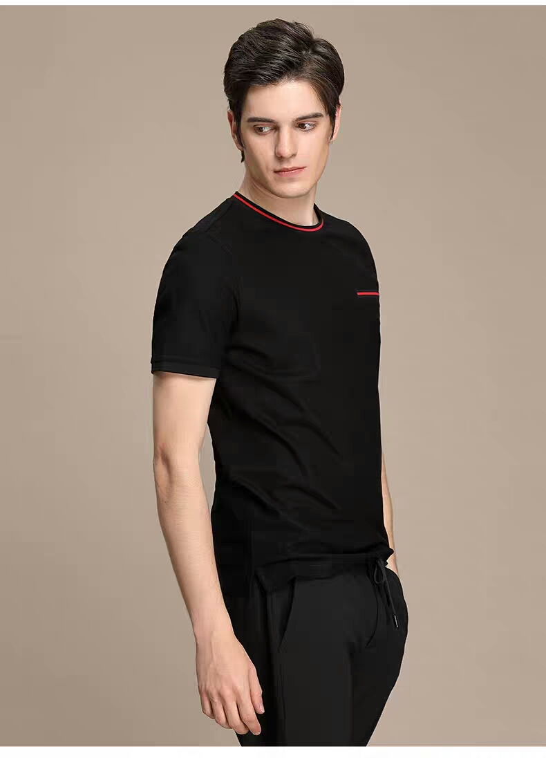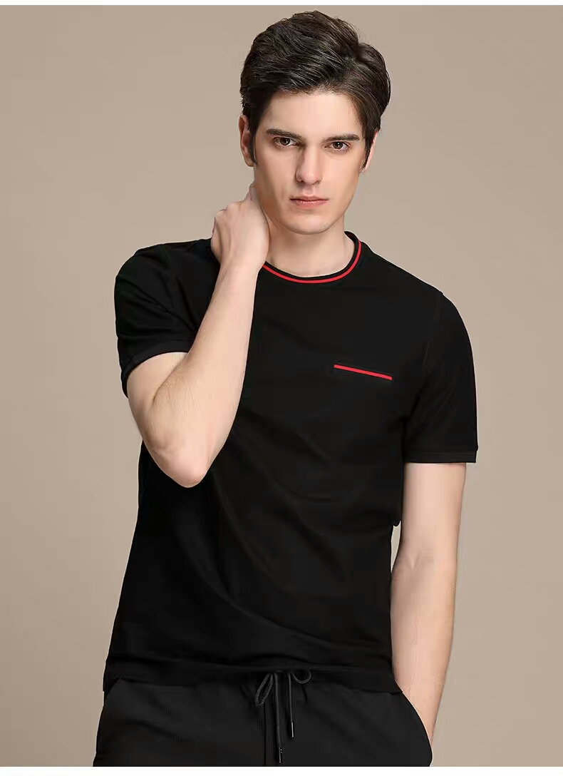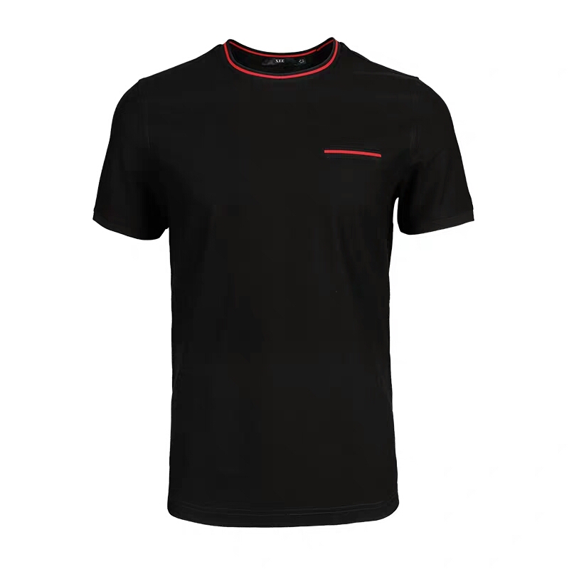 XEE商场同款男士黑色圆领假口袋装饰时尚短袖