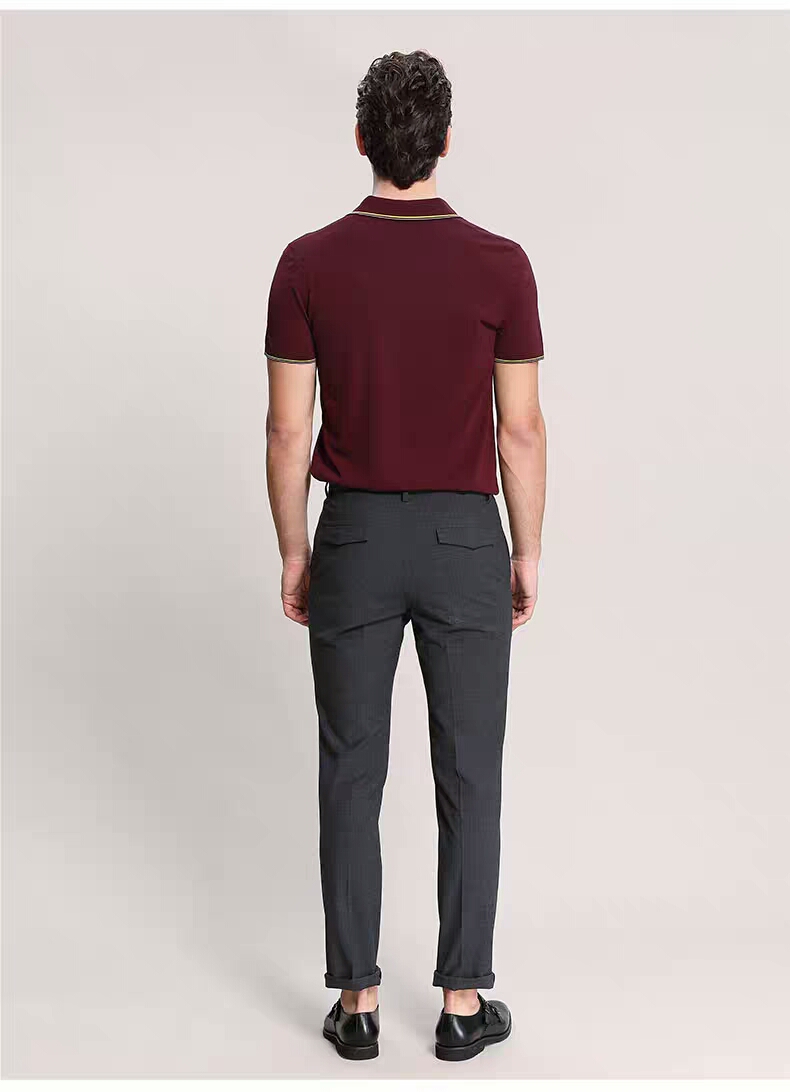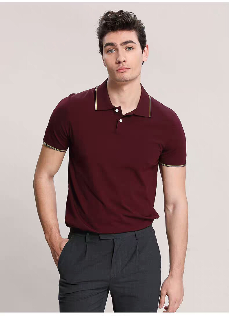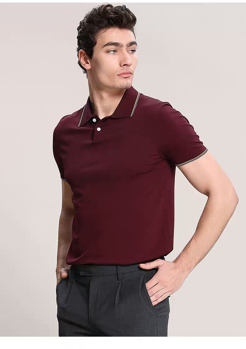 XEE商场同款商务休闲酒红色POIO衫纯色简约短袖T恤