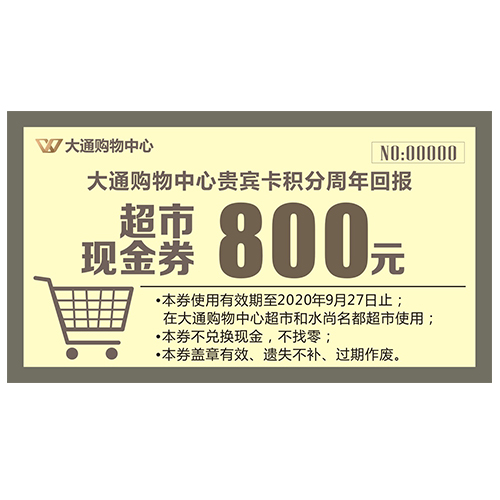 大通购物中心超市现金券800元