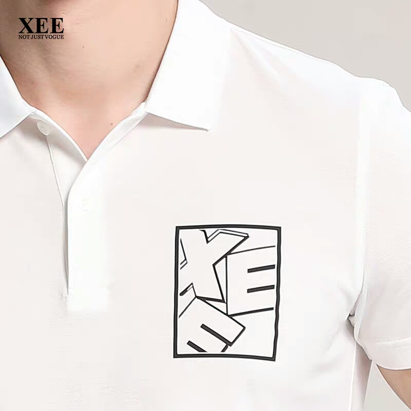XEE商场同款都市欧美白色POIO衫百塔简约翻领短袖男T恤