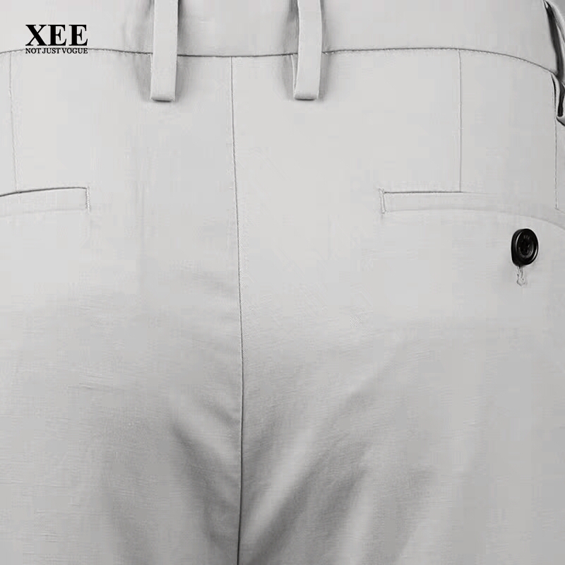 XEE商场同款浅灰色松紧裤腰商务休闲男裤简约合体薄长裤夏