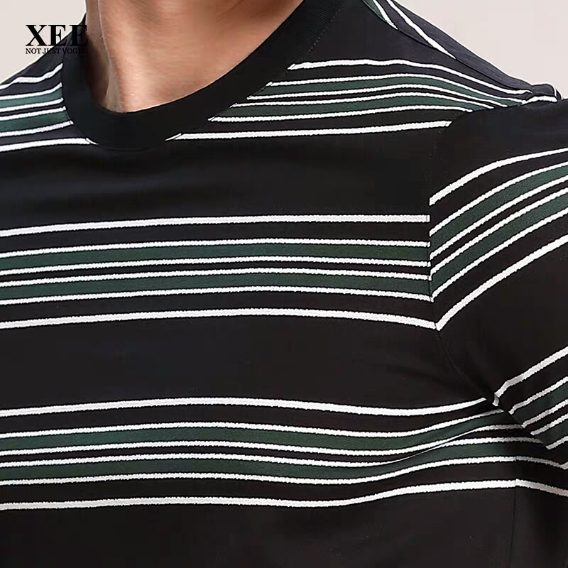 XEE商场同款圆领横条纹黑色短袖时尚都市百搭桑蚕丝男T恤