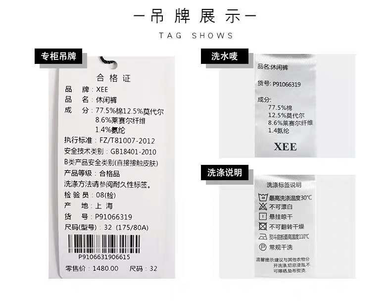 XEE商场同款男士藏青色直筒休闲百搭长裤