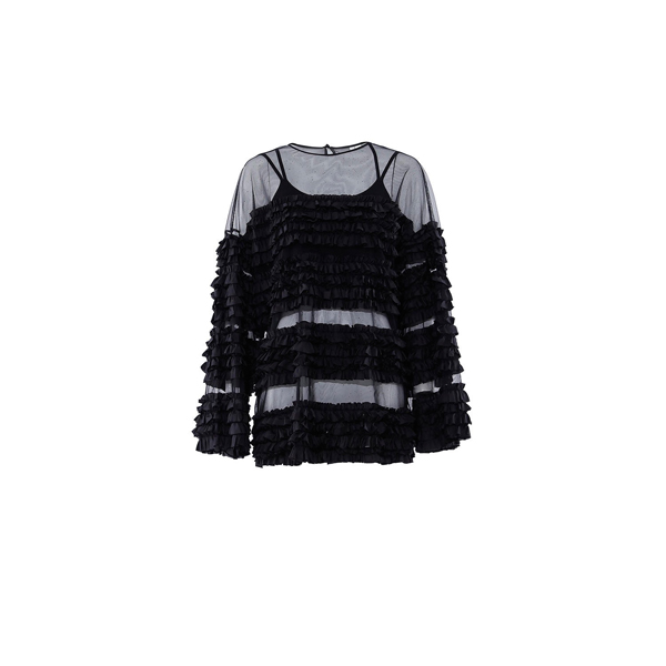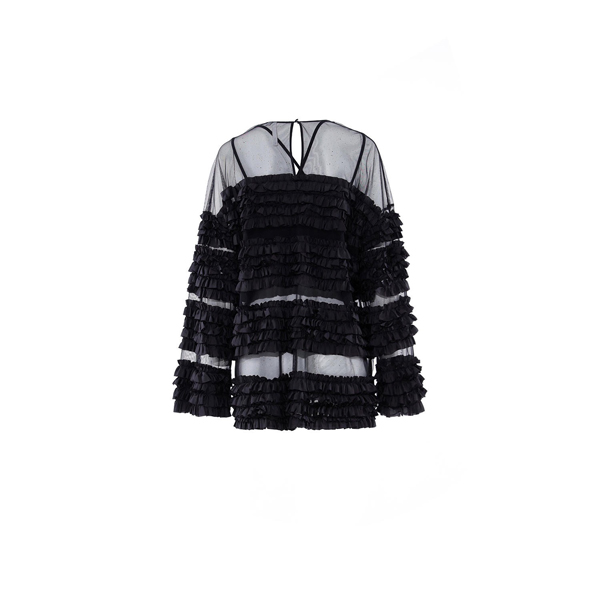 玛丝菲尔素20秋透视木耳边上衣