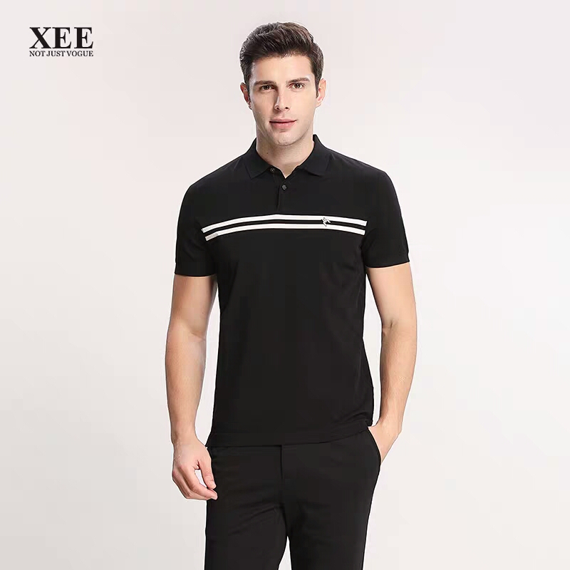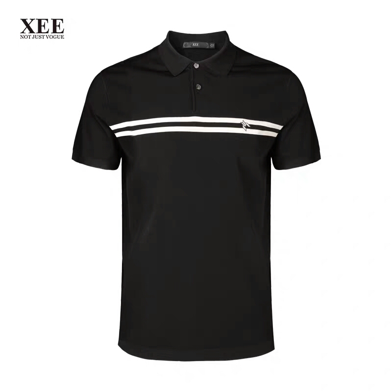 XEE商场同款黑色条纹简约翻领POIO衫