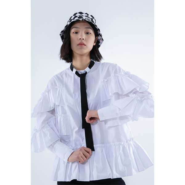 玛丝菲尔素20秋白色宫廷风荷叶边白衬衫