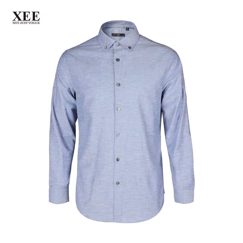 XEE商场同款男士蓝色微弹舒适商务休闲长袖衬衫