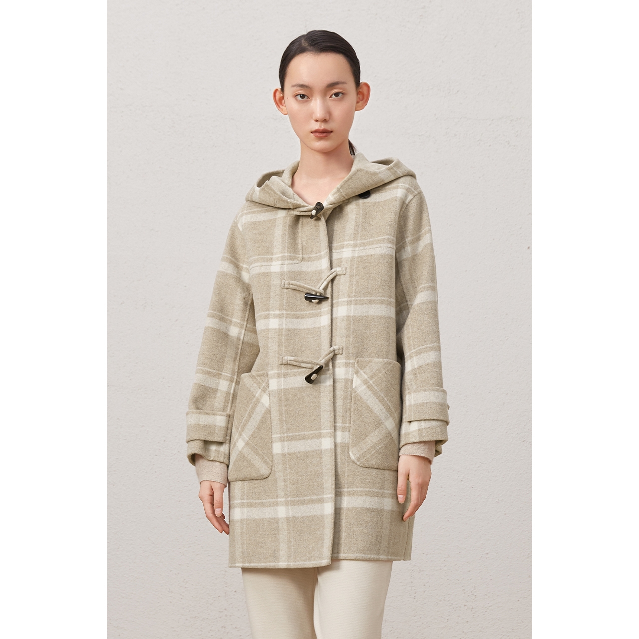商场同款MM麦檬2020冬季新款格纹学院风毛呢大衣