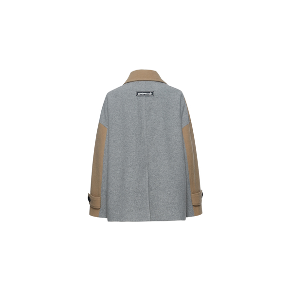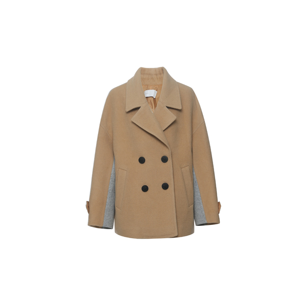 玛丝菲尔素拼色不对称毛呢外套