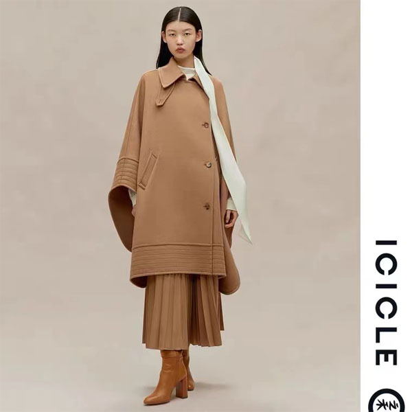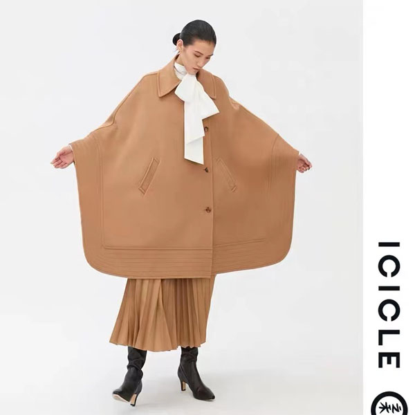 ICICLE之禾女装20秋冬款厚全羊毛双面呢斗篷式大衣1CP23122014A