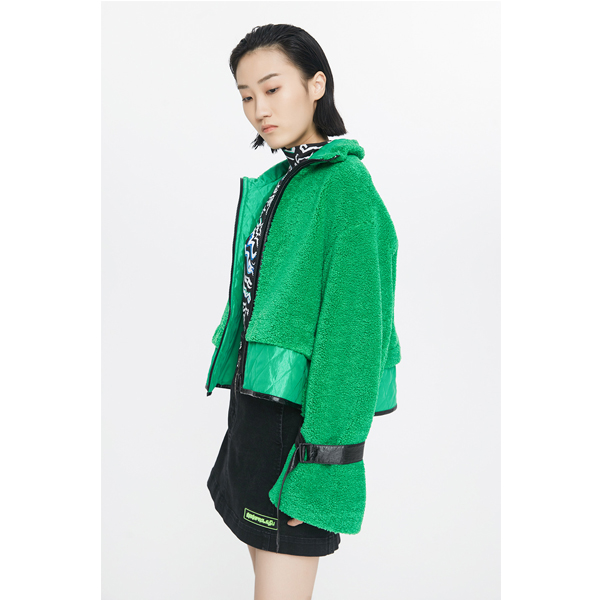 玛丝菲尔素圣诞绿高领拉链棉服