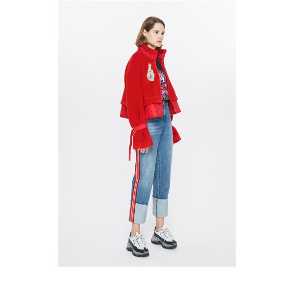 玛丝菲尔素圣诞红短款拉链棉服