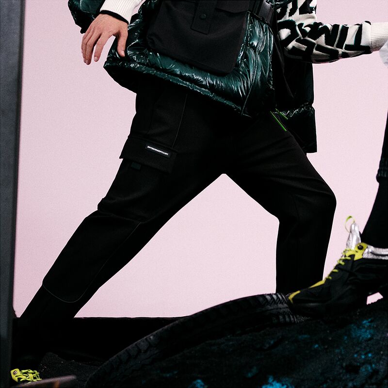 GXG男装冬季商场同款黑色收口工装长裤