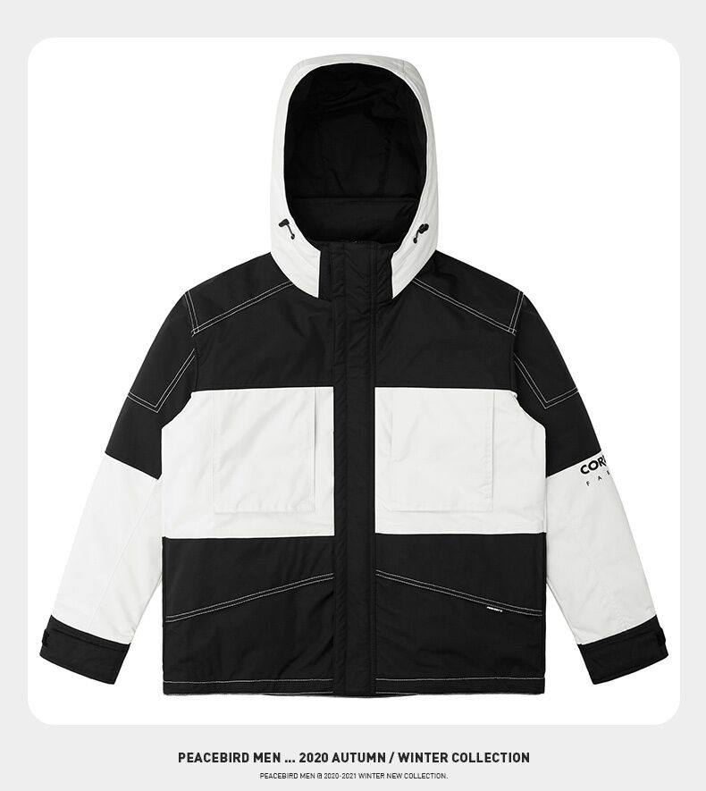太平鸟男装 新款黑白撞色CORDURA羽绒服