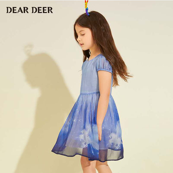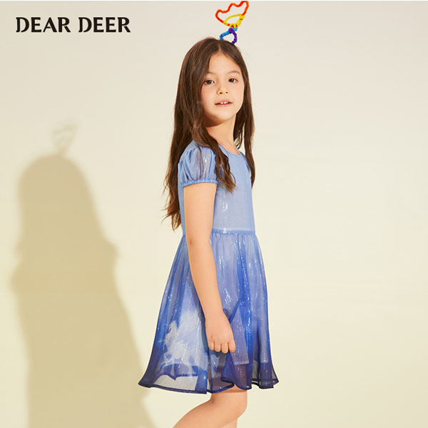 迪迪鹿时尚渐变蓝连衣裙中长款