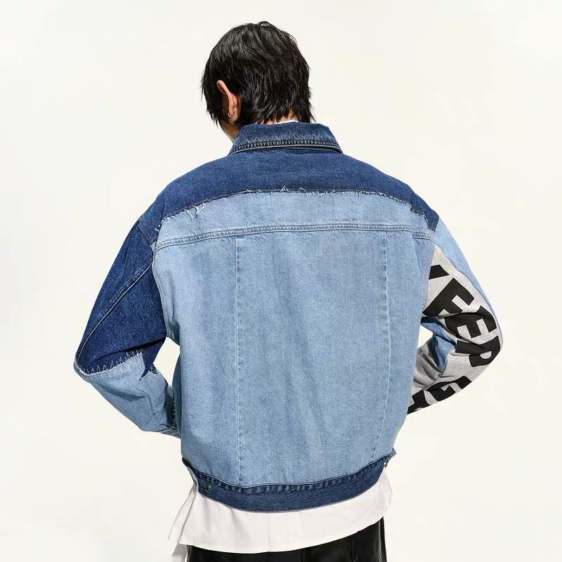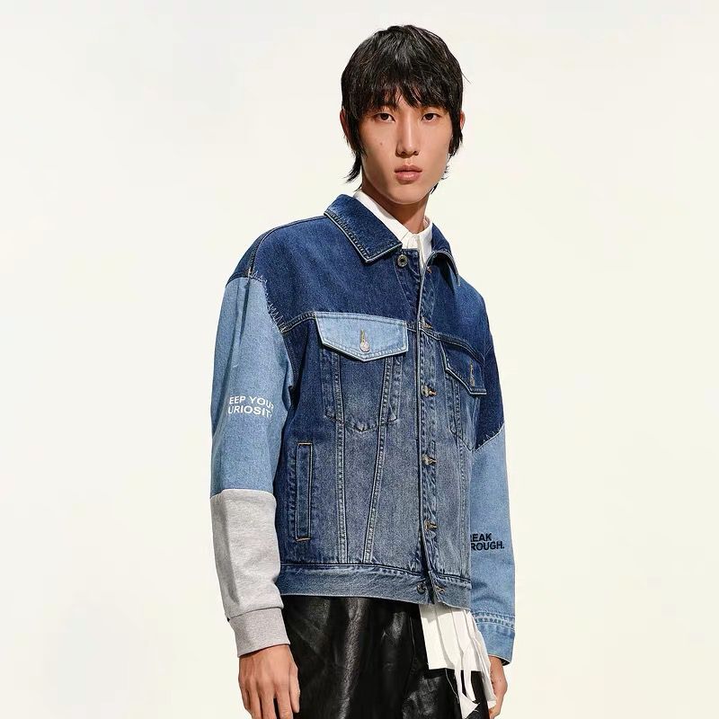 GXG男装生活系列春季撞色拼接牛仔夹克外套