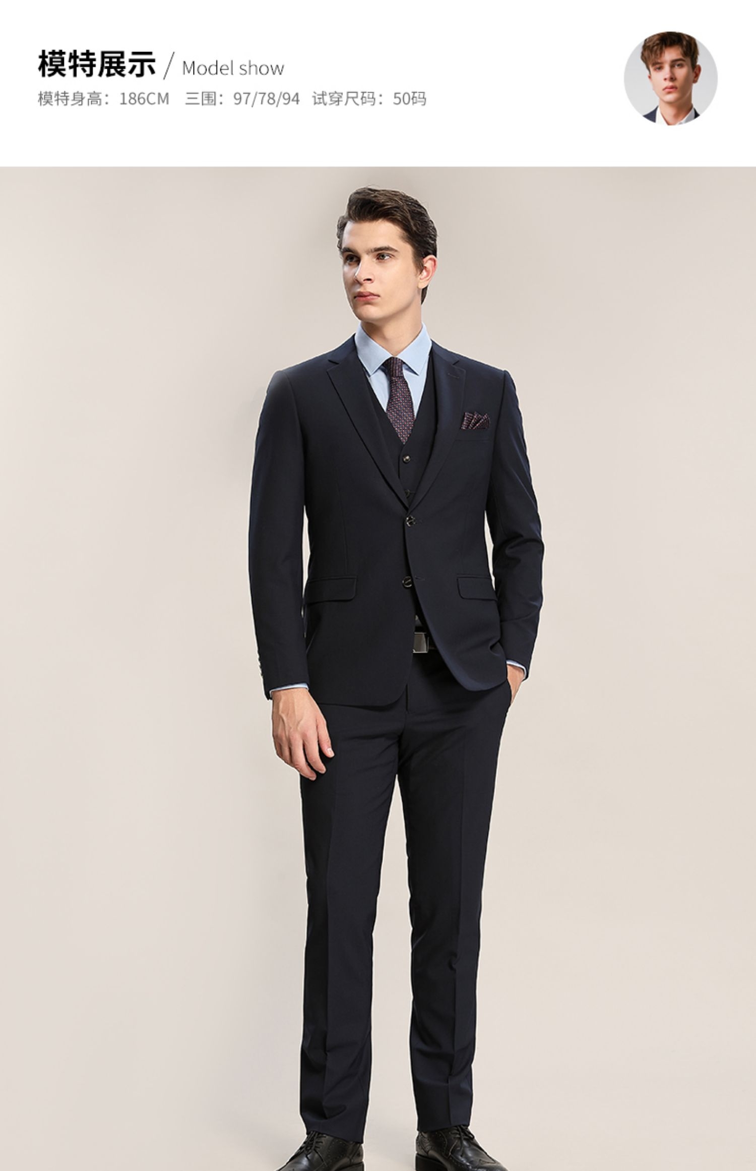 XEE商场同款男士春季藏青色婚庆绵羊毛混纺套西