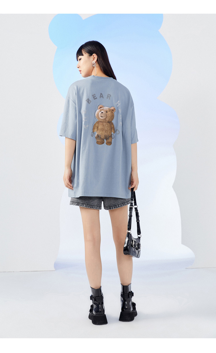 太平鸟2021年春季新款泰迪熊宽松圆领T恤