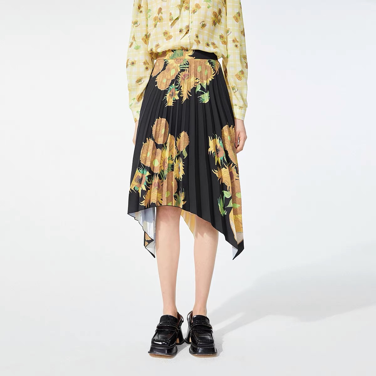 太平鸟梵高博物馆联名压褶长裙半身裙