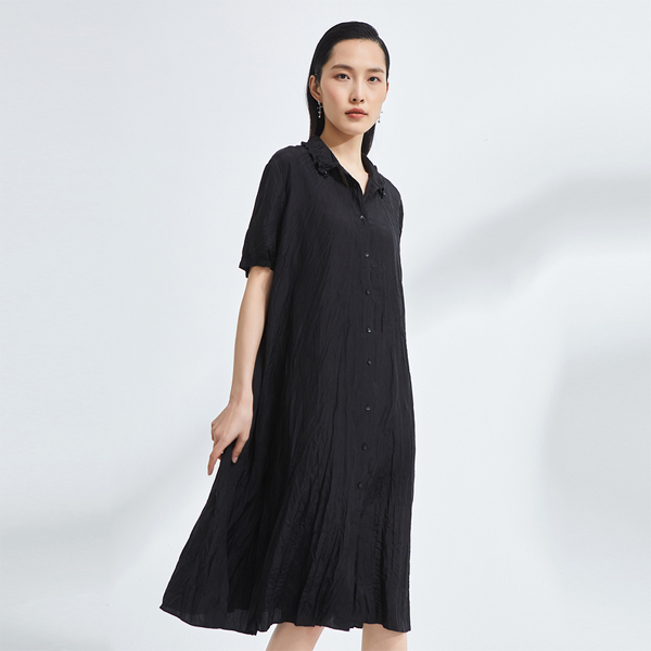 OTT服饰2021夏新品真丝压褶衬衫连衣裙OS1301856