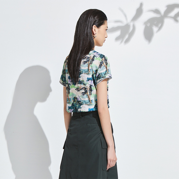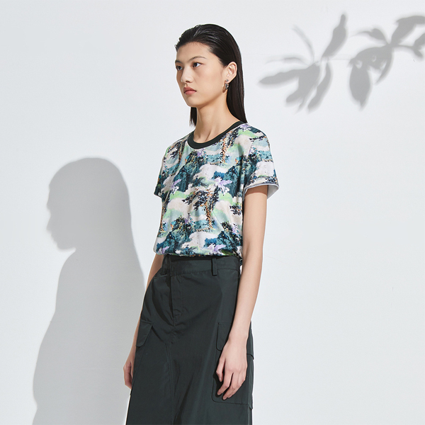 OTT服饰2021夏山海印花圆领短袖T恤OR1300907
