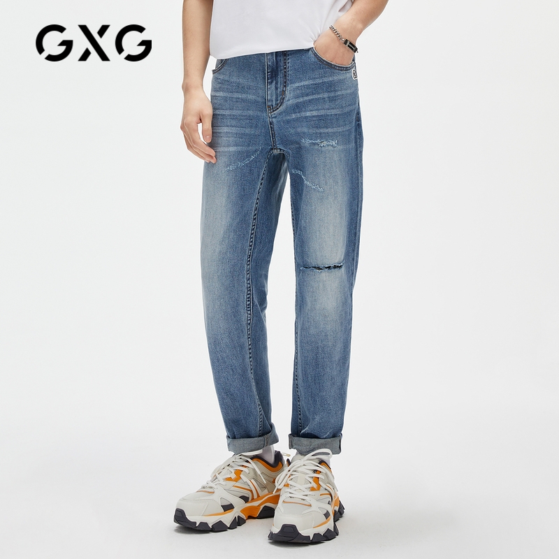 GXG服饰VQ联名21年夏季商场同款潮流破洞休闲牛仔裤