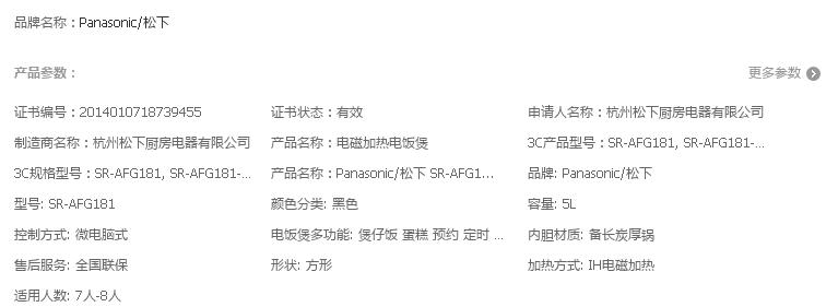 Panasonic/松下 SR-AFG181电饭煲 IH电磁加热5升触摸式电饭锅