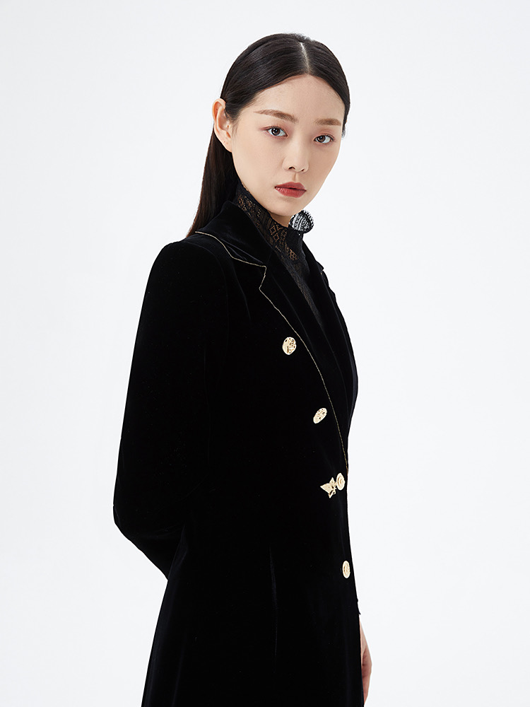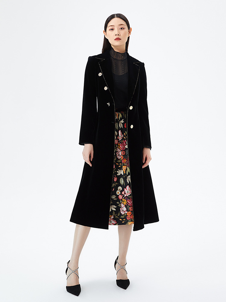 日本进口丝绒手感丝滑有韧性 光泽感高 长款丝绒风衣 女人 气质 优雅 |