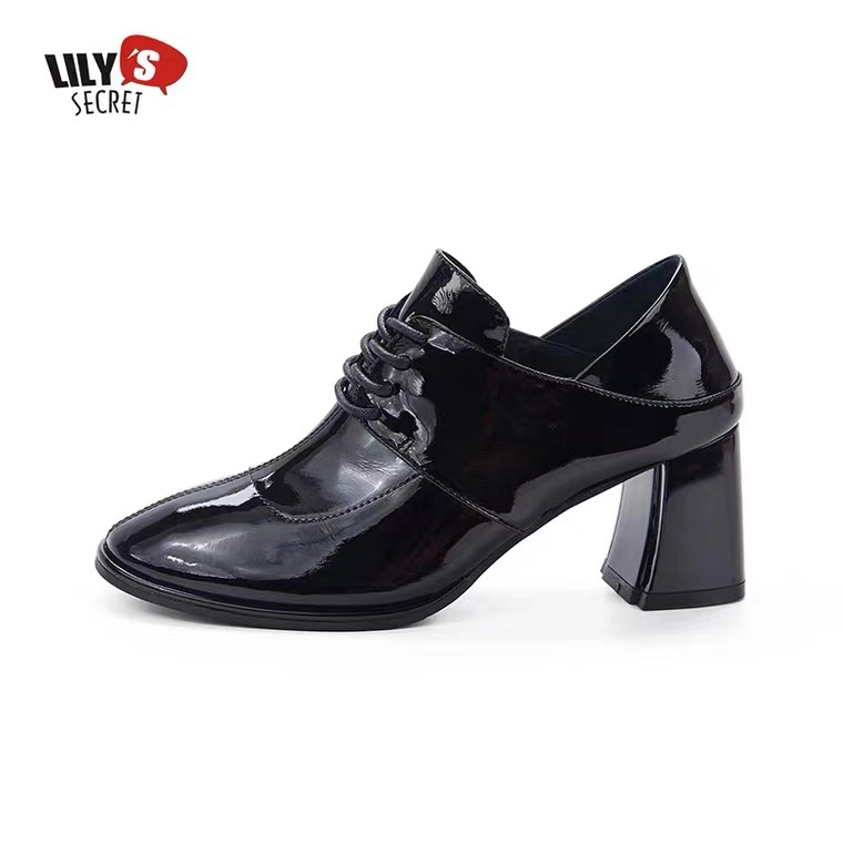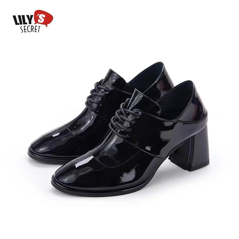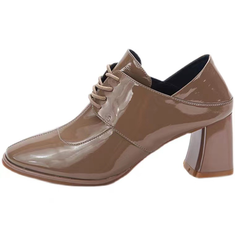 丽丽的鞋柜2021秋季新品粗跟一脚蹬牛漆皮绑带乐福鞋女鞋