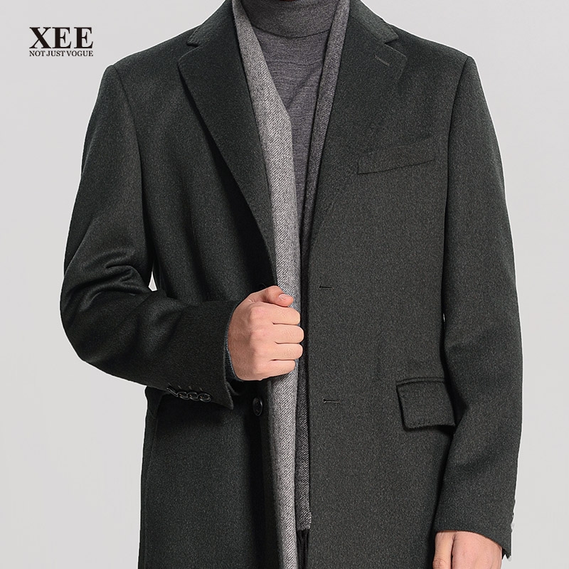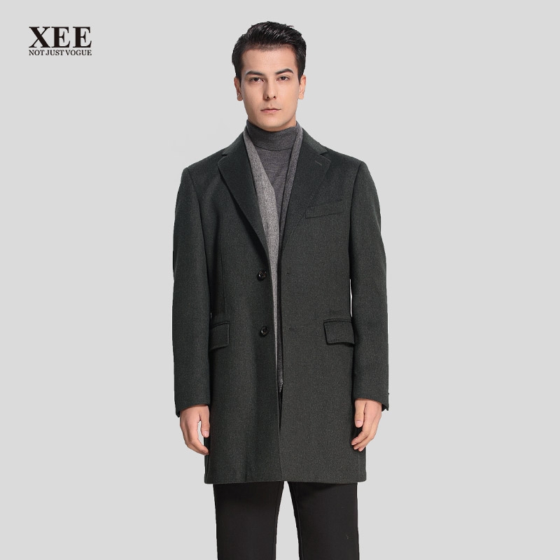 | XEE商场同款 男士冬季深绿色绵羊毛混纺中长款大衣 | |||