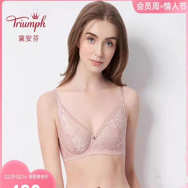黛安芬悠然无钢圈聚拢薄杯蕾丝全杯文胸