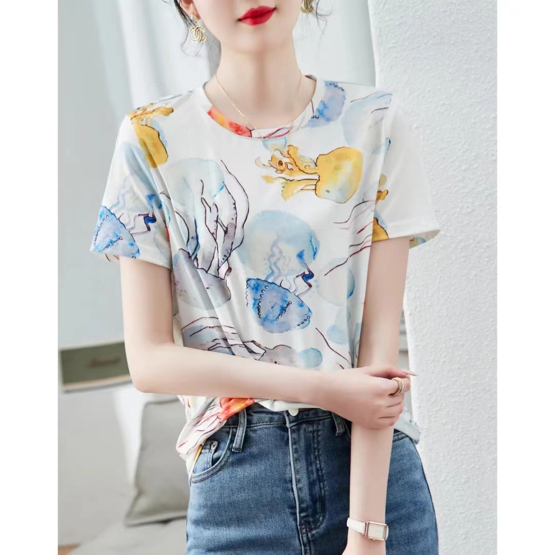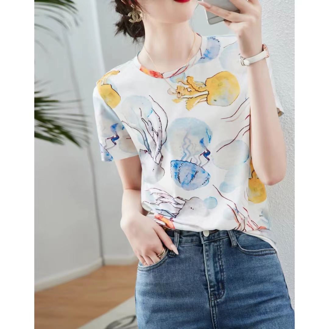 上身效果绝绝子的一款夏T,丝光棉冰冰凉凉。夏日行走的凉凉空调。