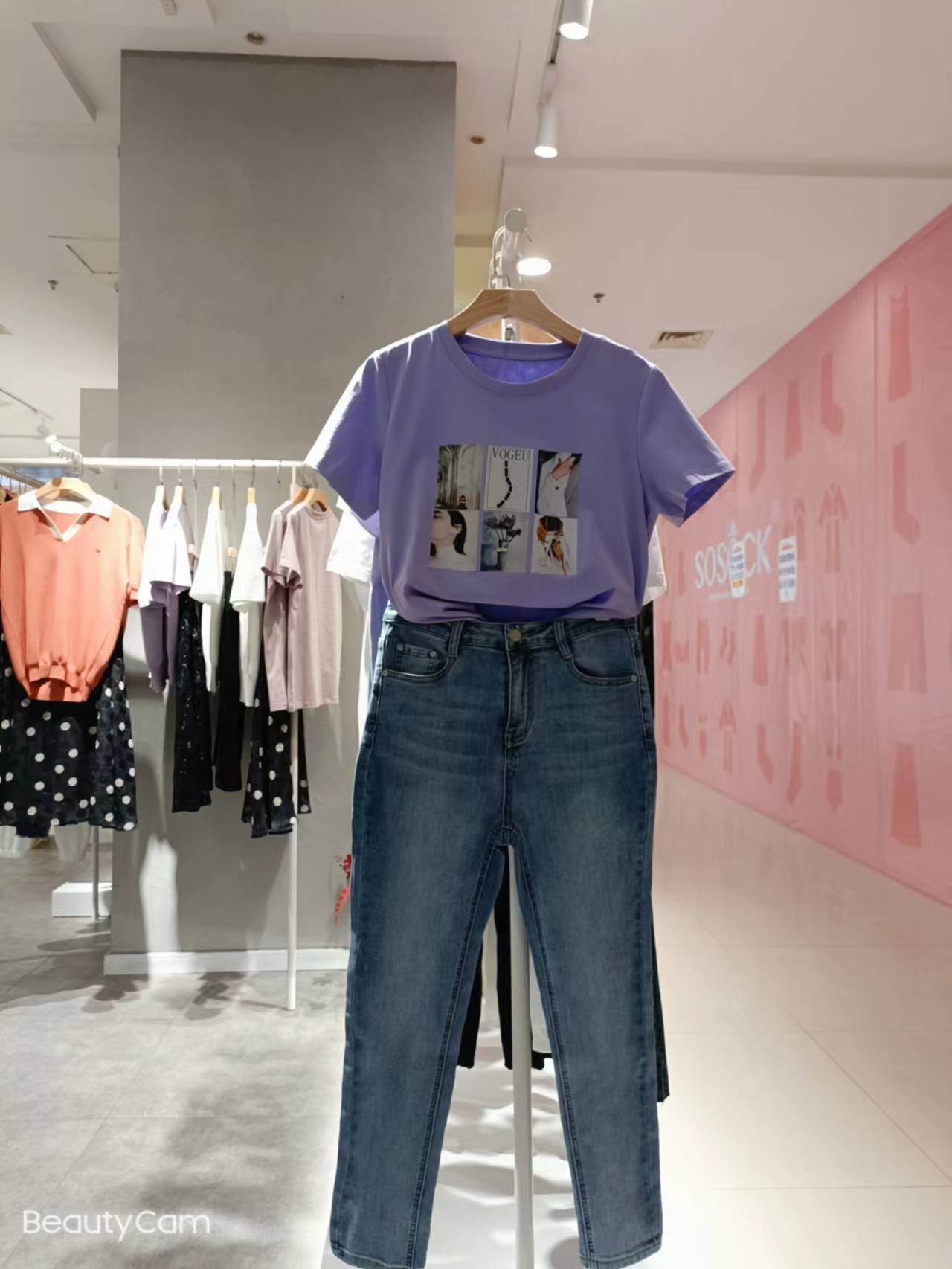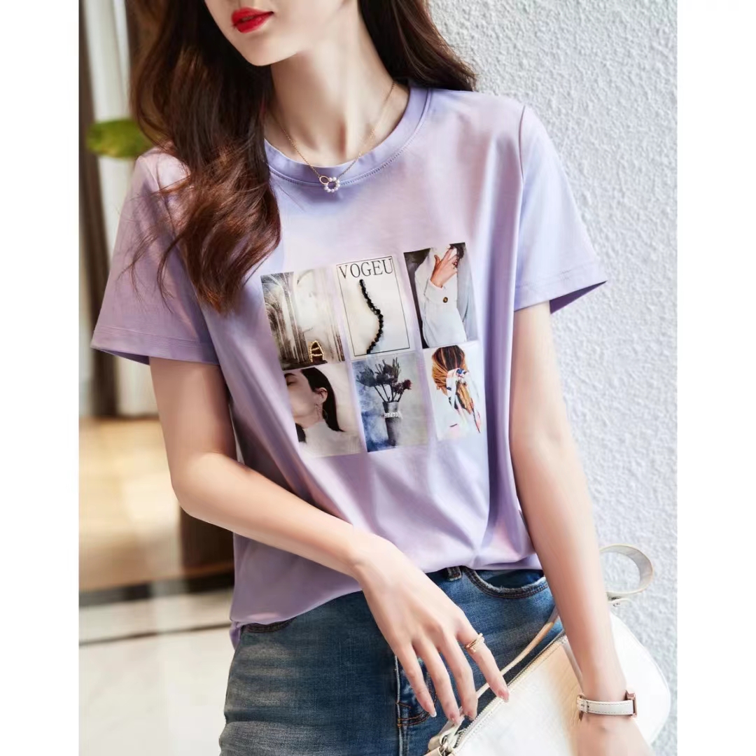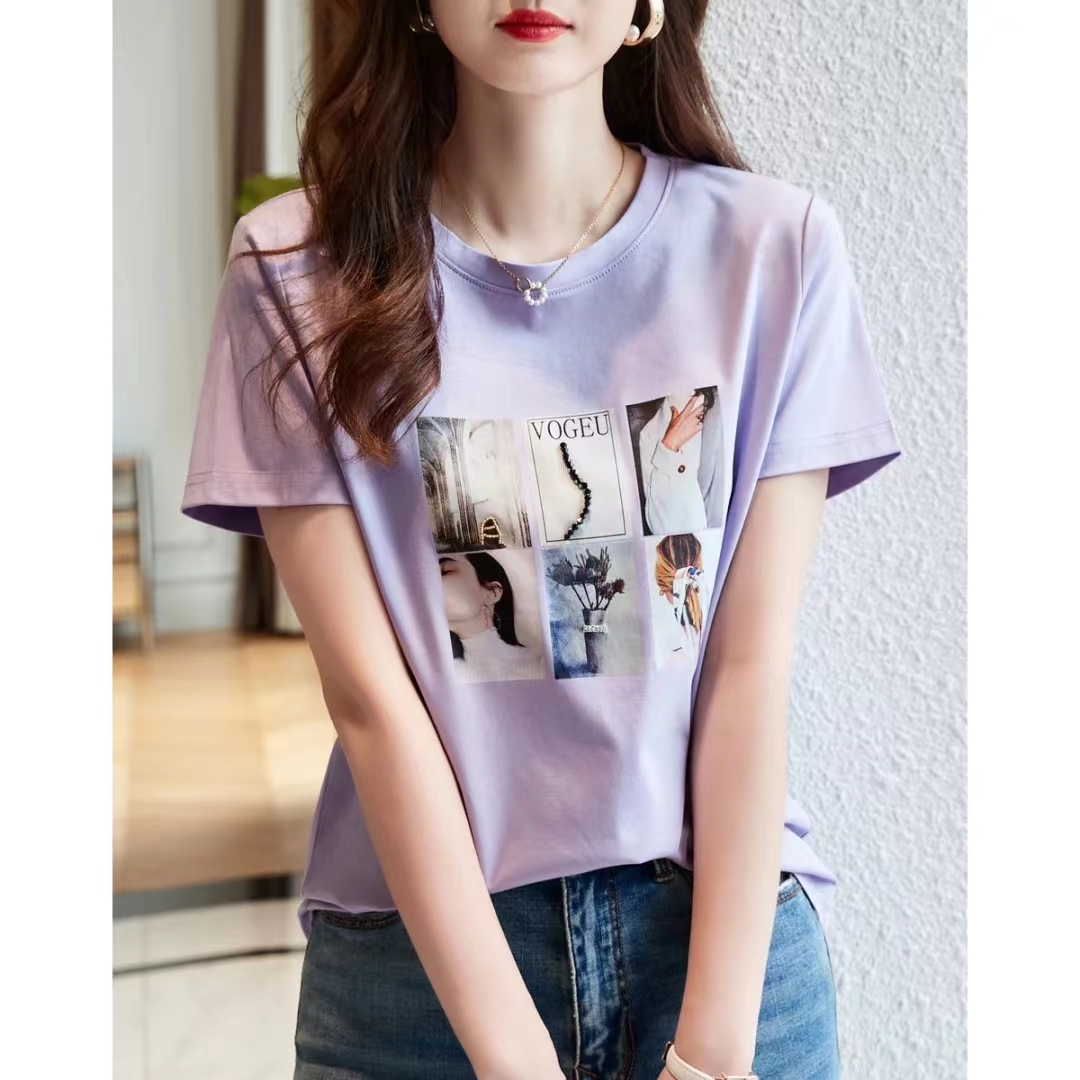 创意管珠圆领T,采用100%新疆长棉,高贵紫色优雅大气!