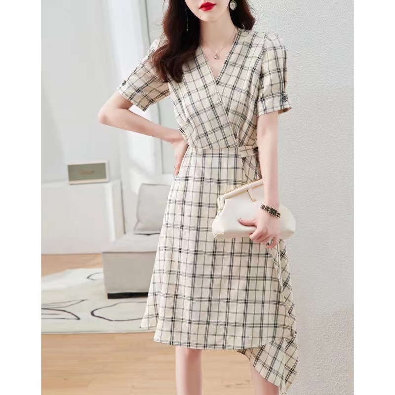 优雅复古V领,清爽格纹,漫漫夏日值得拥有一条!