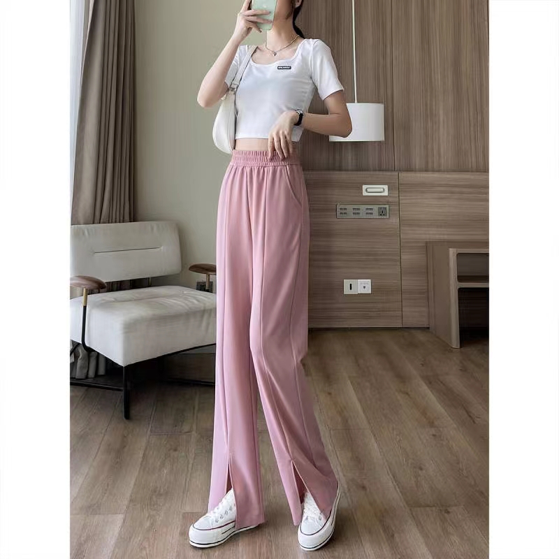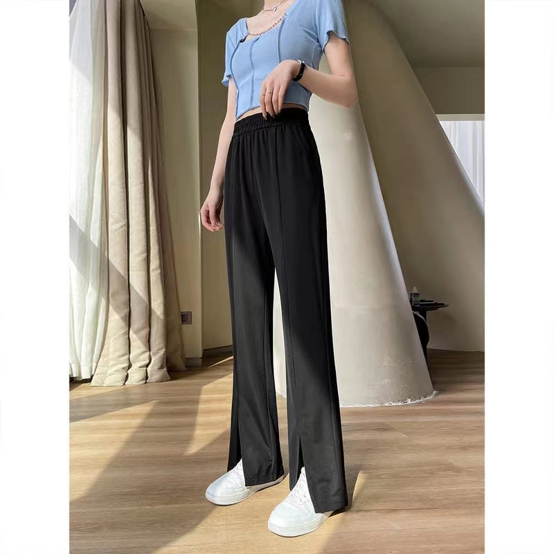 不挑个子的一款冰凉时尚裤,裤脚前开叉设计,又时尚又显腿长!