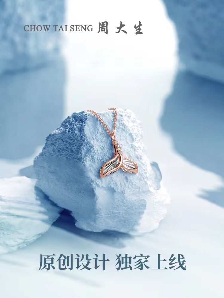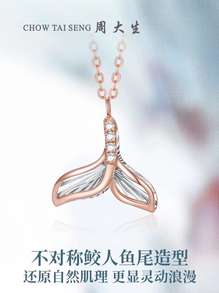周大生钻石项链18K金玫瑰金蝴蝶结套链
