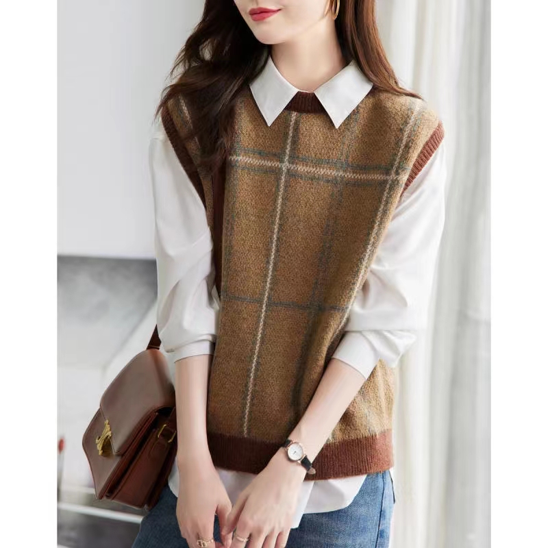 实穿又百搭的一款毛衣马甲,简约又不简单!