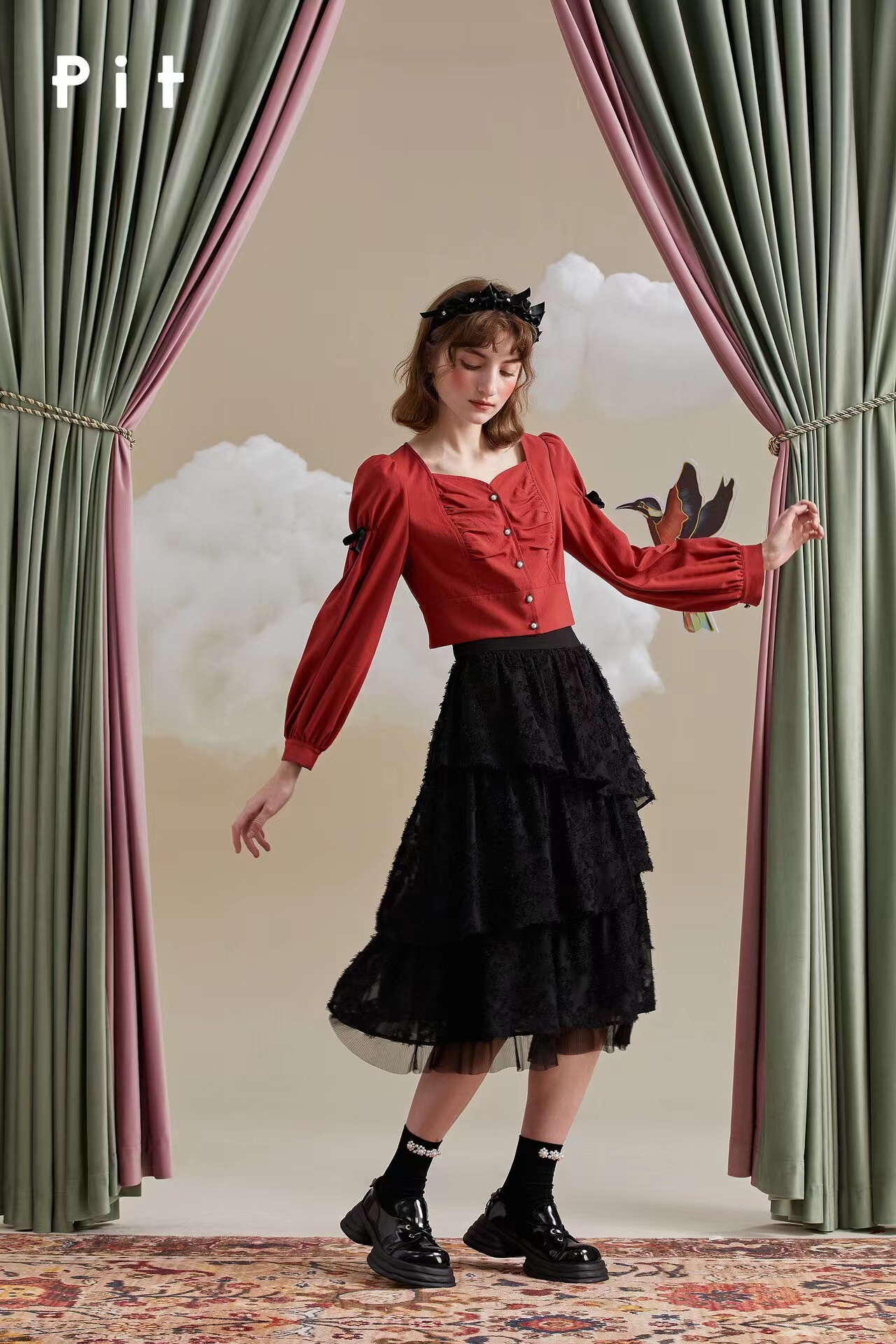 >>PIT不规则设计感高腰显瘦蓬蓬纱裙