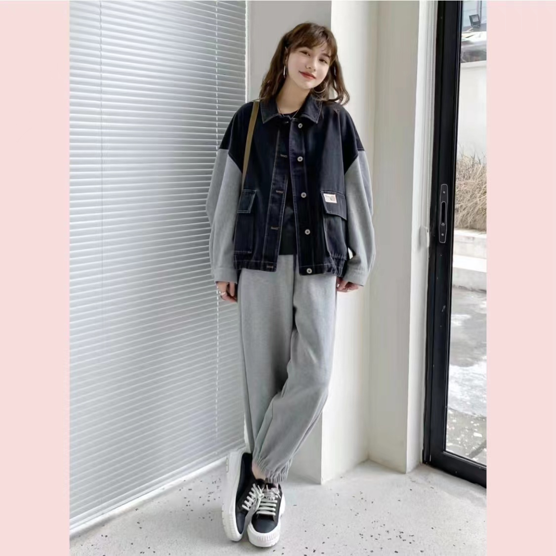>>柚丁秋季新品水洗做旧拼接款休闲外套