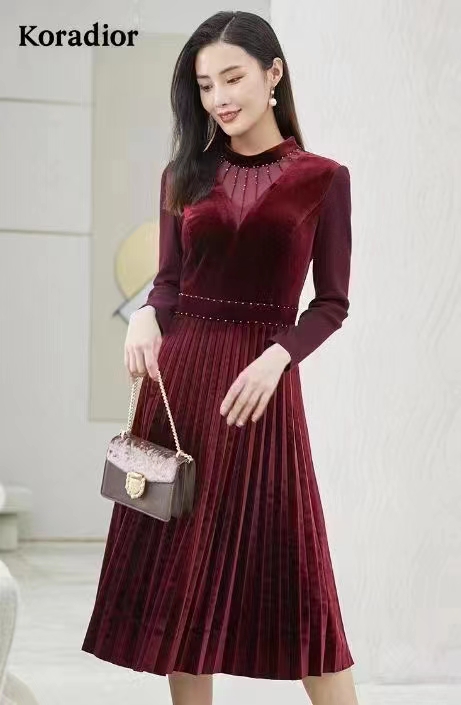 >>珂莱蒂尔 深玫红色丝绒连衣裙