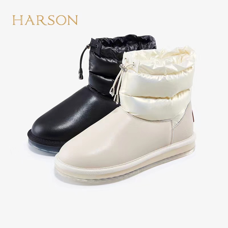 哈森冬季圆头新款冬靴,时尚百搭雪地靴,圆头设计修饰脚型,复合材料拼接更加年轻时尚,平跟舒适让脚部能保持自然状态。 |