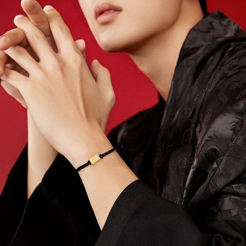 >>周大生任嘉伦代言请君联名款黄金转运珠3D硬金手链足金手串