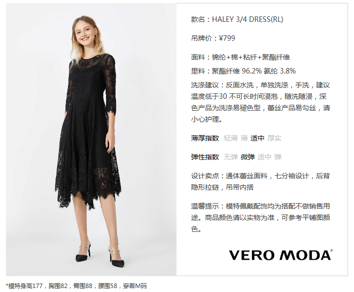 少女装>>Vero Moda2020春夏新款圆领七分袖蕾丝长裙连衣裙女|32027C513