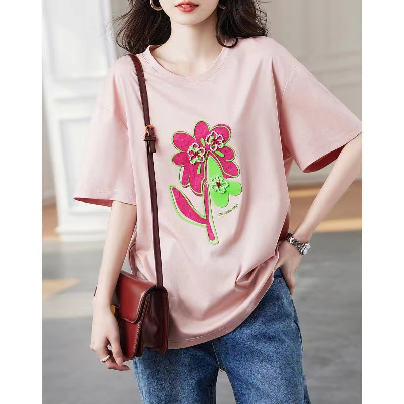 晅昉清爽粉色百搭T袖